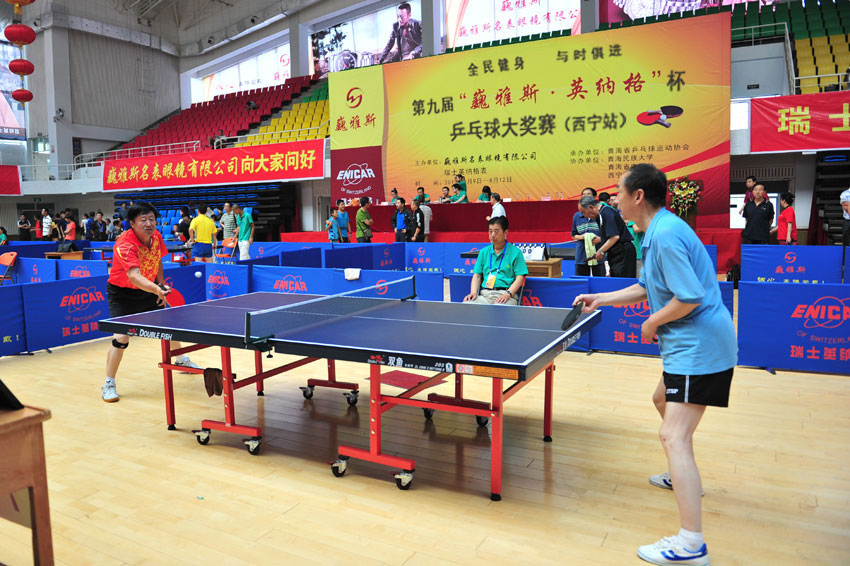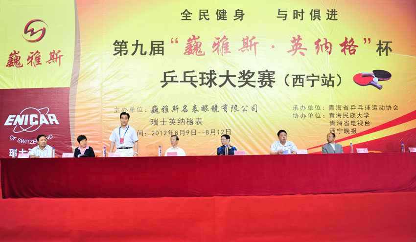 伴隨著國(guó)球健兒在倫敦奧運(yùn)會(huì)包攬金牌的喜訊,以“全民健身與時(shí)俱進(jìn)”為主題的第九屆“巍雅斯·英納格”杯乒乓球大獎(jiǎng)賽(西寧站), 于八月九日在青海民族大學(xué)小島文體館正式開(kāi)打。 開(kāi)幕式由青海省工商聯(lián)黨組副書(shū)記、副主席、青海省乒協(xié)主席于興國(guó)主持。參加開(kāi)幕式的領(lǐng)導(dǎo)有青海省人大常委會(huì)黨組副書(shū)記、副主任沈何,青海省政協(xié)副主席李忠保,國(guó)家體育總局乒羽中心乒乓球二部副部長(zhǎng)戴啟軍,中國(guó)乒協(xié)副秘書(shū)長(zhǎng)李玉環(huán)、青海民族大學(xué)副校長(zhǎng)李生榮、青海省體育總會(huì)秘書(shū)長(zhǎng)張世信等。青海省政協(xié)副主席李忠保,國(guó)家體育總局乒羽中心乒乓球二部副部長(zhǎng)戴啟軍及中國(guó)鐘表商會(huì)副會(huì)長(zhǎng)、甘肅省眼鏡協(xié)會(huì)會(huì)長(zhǎng)、甘肅省乒協(xié)副主席、 巍雅斯名表眼鏡有限公司董事長(zhǎng)裴正江在開(kāi)幕式上分別致辭。 開(kāi)幕式現(xiàn)場(chǎng)記者采訪了本次大賽贊助商巍雅斯名表眼鏡有限公司董事長(zhǎng)裴正江,裴董介紹:參加本屆大賽的有來(lái)自甘、寧、青、藏、陜以及內(nèi)蒙古等省(區(qū))的七十八支代表隊(duì)、八百多名選手報(bào)名參賽。乒乓球愛(ài)好者們從五歲的兒童到八十多歲的老將,從普通百姓到機(jī)關(guān)干部,男女老少,積極參與;切磋球藝、傳遞友誼,共同提高。 大獎(jiǎng)賽分10個(gè)組別進(jìn)行,每個(gè)組別均設(shè)有團(tuán)體和單打兩個(gè)項(xiàng)目。本次大賽主辦方提供了價(jià)值50萬(wàn)元以上的獎(jiǎng)品,且每位參賽運(yùn)動(dòng)員均可獲贈(zèng)價(jià)值258元的紀(jì)念獎(jiǎng)。 2002年至今,由巍雅斯名表眼鏡有限公司贊助,分別在蘭州和銀川舉辦了八屆“巍雅斯”杯乒乓球大獎(jiǎng)賽。為青海、甘肅、寧夏三省(區(qū)),以及西藏(拉薩)、內(nèi)蒙(左旗、烏海)、陜西(西安、定邊、榆林)等地區(qū)的乒乓球愛(ài)好者提供了一個(gè)良好的健身、鍛煉、交流和提高的平臺(tái)。 裴董事長(zhǎng)表示:為感謝六省區(qū)廣大消費(fèi)者多年來(lái)的支持和厚愛(ài),巍雅斯將一如既往的為光彩事業(yè)和乒乓球運(yùn)動(dòng)奉獻(xiàn)愛(ài)心,將“巍雅斯”杯乒乓球大獎(jiǎng)賽作為企業(yè)文化的主要內(nèi)容,一屆勝似一屆的連續(xù)舉辦下去。辦成西北地區(qū)乒乓健兒一年一度的歡聚盛會(huì),辦成六省區(qū)具影響力的國(guó)球品牌賽事。