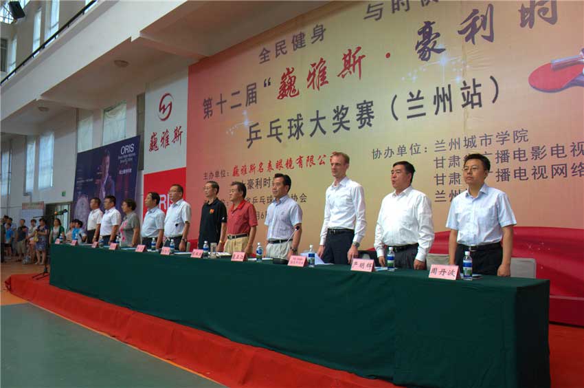 由巍雅斯名表眼鏡有限公司、瑞士豪利時(shí)表主辦,甘肅省乒乓球協(xié)會(huì)承辦,蘭州城市學(xué)院、甘肅廣播電影電視總臺(tái)、甘肅廣播電視網(wǎng)絡(luò)股份有限公司、蘭州晨報(bào)協(xié)辦的第十二屆“巍雅斯?豪利時(shí)”杯乒乓球大獎(jiǎng)賽(蘭州站),今日在蘭州城市學(xué)院培黎校區(qū)體育館正式開幕。來自85個(gè)俱樂部,221支代表隊(duì)的1000多名運(yùn)動(dòng)員,參加所在組別的團(tuán)體和單打比賽,在享受乒乓快樂的同時(shí),向 110多個(gè)獎(jiǎng)項(xiàng)展開激烈角逐,向高達(dá)近8000元的冠軍大獎(jiǎng)發(fā)起沖刺。