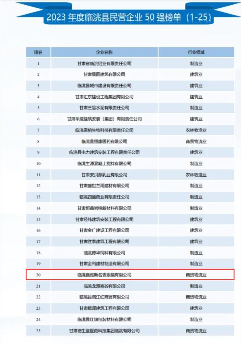 3月24日,2023年度臨洮縣民營(yíng)企業(yè)50強(qiáng)及行業(yè)10強(qiáng)發(fā)布會(huì)在文化中心召開,會(huì)上,2023年度臨洮縣民營(yíng)企業(yè)50強(qiáng)及行業(yè)10強(qiáng)榜單正式發(fā)布,并對(duì)上榜企業(yè)授牌。
