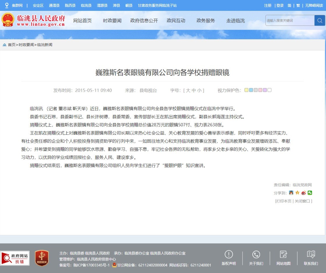 巍雅斯名表眼鏡有限公司向各學(xué)校捐贈眼鏡