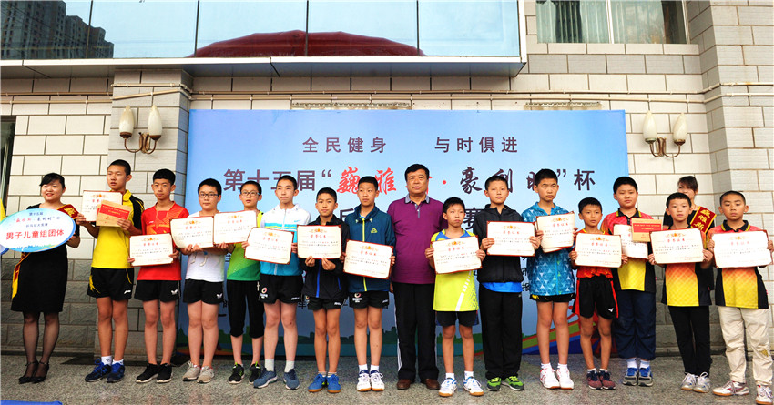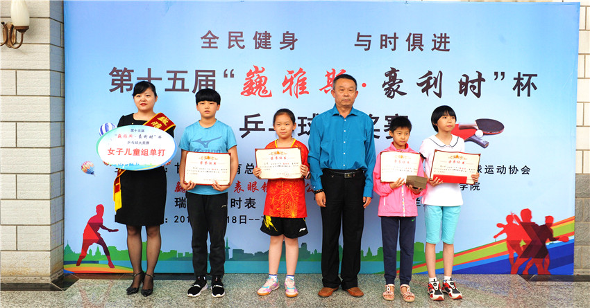 第十五屆“巍雅斯·豪利時”杯乒乓球大獎賽少年兒童組比賽舉行頒獎儀式