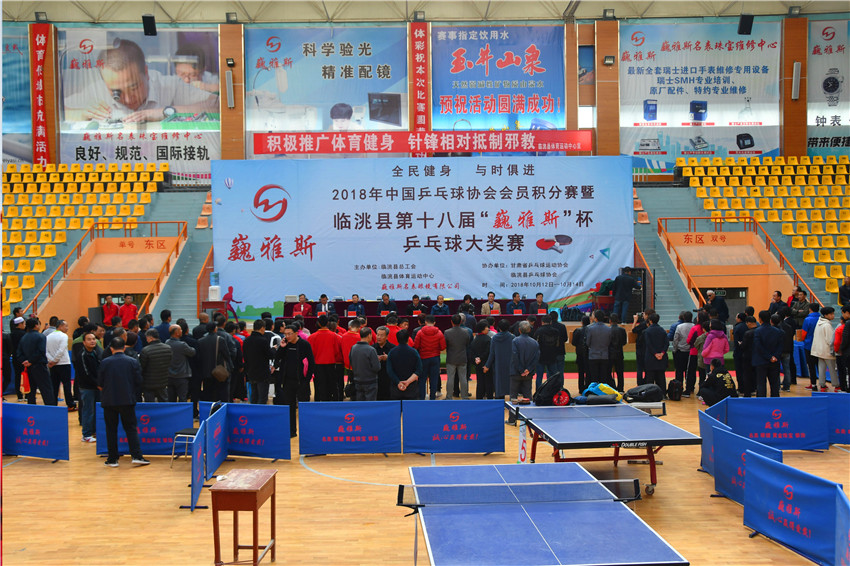 2018年10月12日上午,由臨洮縣總工會、臨洮縣體育運動中心、巍雅斯名表眼鏡有限公司主辦,甘肅省乒乓球運動協會、臨洮縣乒乓球協會協辦的2018年中國乒乒乓球協會會員積分賽暨臨洮縣第十八屆“巍雅斯”杯乒乓球大獎賽在著名的花卉之鄉(xiāng)--臨洮縣拉開帷幕。