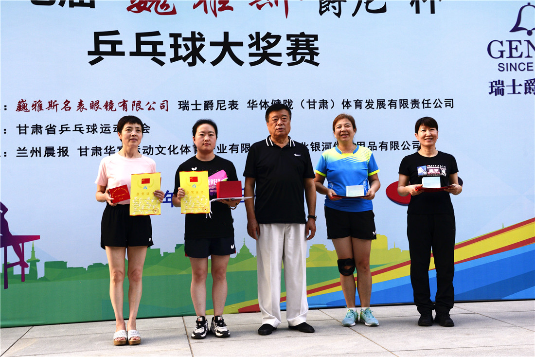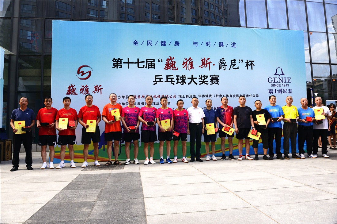 第十七屆 “ 巍雅斯 · 爵尼杯”乒乓球大獎賽比賽,經(jīng)過兩天緊張激烈的角逐,8月20日下午,成人組和嘉賓組名次花落其主。中國鐘表商會副會長、甘肅省眼鏡協(xié)會會長、甘肅省乒協(xié)副會長、巍雅斯名表眼鏡有限公司董事長裴正江,甘肅省乒乓球運動協(xié)會會長韓力,甘肅省乒乓球運動協(xié)會副會長張占學、姚天宏,甘肅省乒乓球運動協(xié)會顧問苗發(fā),青海省乒協(xié)副主席高麗嚴,巍雅斯名表眼鏡有限公司總裁裴明偉,巍雅斯名表眼鏡有限公司副總裁裴明宏出席頒獎儀式并為獲獎代表隊和運動員頒獎。甘肅省乒協(xié)秘書長宋建農(nóng)主持頒獎儀式。