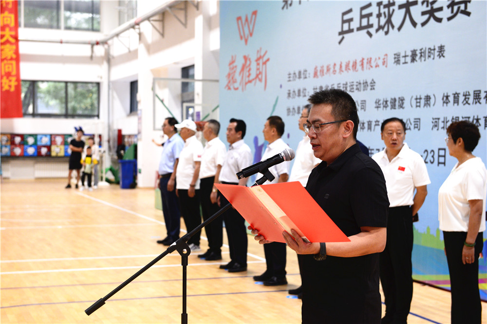 中國鐘表商分會副會長、甘肅省眼鏡協(xié)會會長、甘肅省乒乓球運動協(xié)會副會長、巍雅斯名表眼鏡有限公司董事長裴正江,瑞士豪利時表大中華區(qū)總裁菲利普·拉德納,豪利時中國總經(jīng)理章蔚及有關領導、運動員、裁判員、教練員、工作人員一起參加了簡樸但氣氛熱烈的大獎賽開幕式。